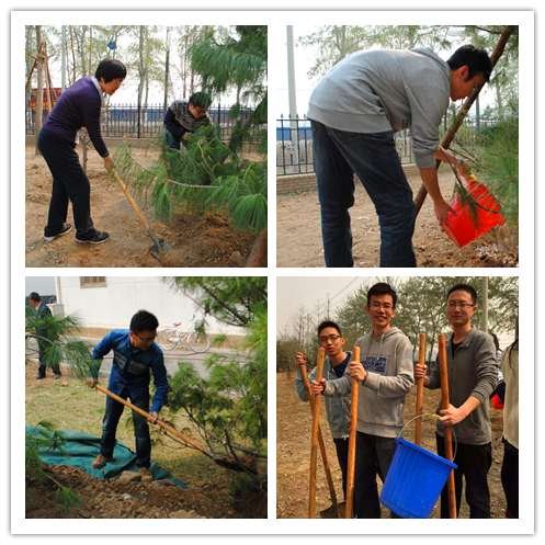 活动开始,谭小芬副书记为大家讲解了植树的注意事项,并将师生党员分成了10组,师生们都快速投入到植树的行列中,拿起铁锹,有的培土,有的扶树,有的踩实,有的浇水,大家互相协作、其乐融融。经过近一个小时的辛勤劳动,10棵高大挺拔、郁郁葱葱的华山松昂首挺立在沙河校园内,看着刚刚栽下的树苗所有人的脸上都洋溢着灿烂的笑容。随后,葛仁霞书记、张礼卿教授、谭小芬副书记等老师将标有“大美沙河,有你有我,金融公司党员公益林”的标牌挂在亲手种下的小树上。