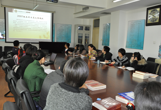 葛仁霞老师认真听取各支部汇报并对每个支部的工作进行点评。她在肯定各党支部一学期以来认真开展工作的同时,鼓励各支部成员继续发扬密切联系群众的优良作风,关注时事热点,关心员工需求,精心设计活动方案和载体,不断探索符合本支部特点的学习型党支部建设模式,在班级建设和学风建设等项工作中更好地发挥党支部的核心作用和党员的先锋模范带头作用。
