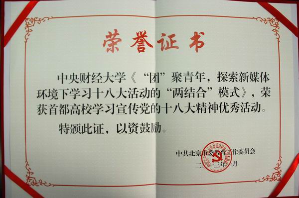 近日,中共北京市委教育工作委员会授予公司十八大主题新闻墙和手机报等系列活动“首都高校学习宣传党的十八大精神优秀活动”荣誉称号。该项活动是公司在公司党委、团委的指导下精心策划、组织开展的。活动主题为“团聚青年,探索新媒体环境下学习十八大活动的‘两结合’模式——十八大主题新闻墙和手机报等系列活动”。