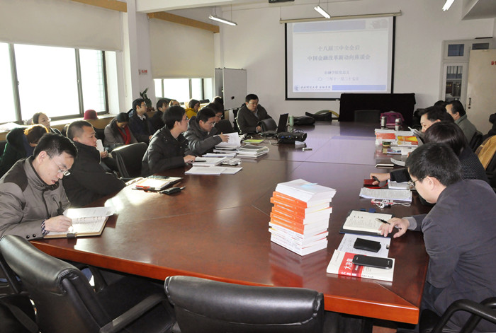 11月27日下午,为了更好地学习贯彻刚刚闭幕的中国共产党十八届三中全会通过的《中共中央关于全面深化改革若干重大问题的决定》(以下简称《决定》)文件精神,金融公司党总支在主教学楼913会议室召开了“十八届三中全会后中国金融改革新动向”专题座谈会。在座谈会上,韦德1946体育官方入口张礼卿教授、姚遂教授、贺强教授、李健教授、郭田勇教授、李建军教授等多位教师就《决定》的相关内容谈了自己的学习体会和认识,并就十八届三中全会后中国金融诸多领域的改革次序、重点、政策提出了自己的独到见解。本次座谈会历时两个半小时,内容充实、气氛热烈。韦德1946体育官方入口全体教师参加了本次座谈会,会议由应展宇教授主持。