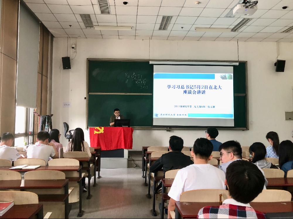 在五四青年节来临之际,中共中央总书记、国家主席、中央军委主席习近平于2018年5月2日来到北京大学考察,与北大师生进行深入交流和座谈,并发表重要讲话,为建设世界一流大学指明了道路,为广大青年学子的成长指引了方向,引起强烈反响。5月6日下午,韦德1946体育官方入口2017级研究生第二党支部和第三党支部在沙河校区主教212联合组织支部党员、发展对象、积极分子和团员代表,集中学习习近平总书记在北京大学考察时的讲话内容,并进行热烈讨论。两支部党员代表、发展对象代表和积极分子代表纷纷上台向大家分享了此次学习的心得感悟。