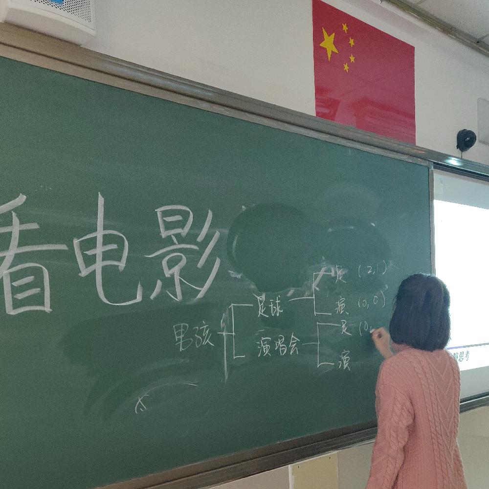 在介绍完了本篇的理论知识后,为了检验同学们对这堂课程的掌握程度,霍佰琦同志在课程的最后又设置了一道动脑思考题,也是博弈论中序贯博弈理论的“情侣博弈”案例,这一问题的提出激起了课堂上的热烈讨论,同学们在根据课堂所授的逆向归纳法进行回答之后,前排还有一个男同学就这道问题的了解提出了自己不同的解题思路,结合了之前电影中纳什提出这个理论时所用到的“最好的结果是组里的每一个人做对自己最有利且对其他成员都有利的选择”一句台词,尝试从支付矩阵直接得到结论。课堂上同学们对这道思考题的积极互动让这堂课的学习氛围变得十分浓烈。