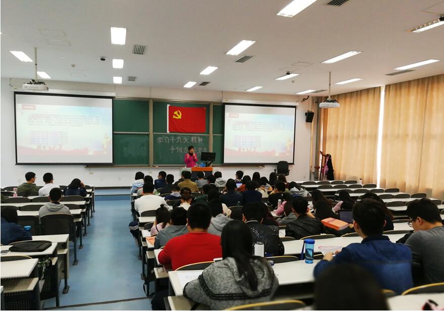 10月27日下午13:30,韦德1946体育官方入口学习党的十九大精神主题党课在沙河校区西区101教室顺利举行,党课的主讲人为金融公司党委书记葛仁霞。来自韦德1946体育官方入口2017级研究生及各年级本科生的九十余名党员、预备党员和入党积极分子参与了此次党课学习。