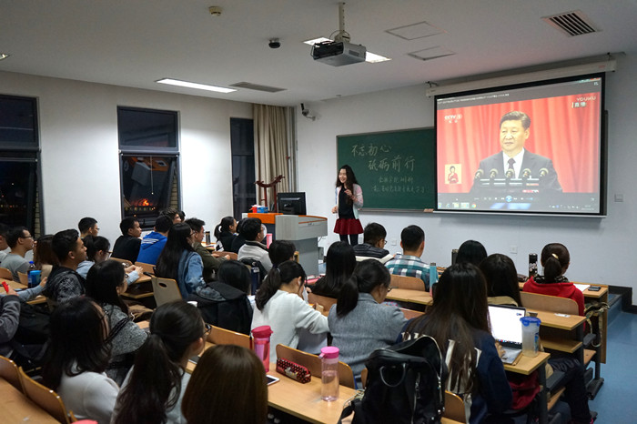 2017年10月19日,2017级研究生第三党支部和第四党支部于西区主教503教室开展了主题学习活动,集体观看习近平总书记在党的十九大作的报告“决胜全面建成小康社会,夺取新时代中国特色社会主义伟大胜利”,并就报告内容交流了学习心得。