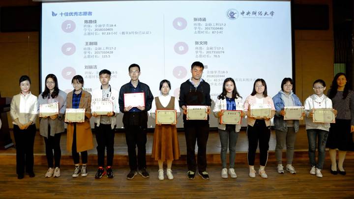 潘江雪员工、王辉副书记为十佳志愿者颁奖
