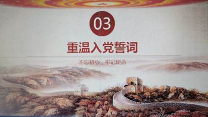 活动最后一项,全体党员同志重温入党誓词。“我志愿加入中国共产党,拥护党的纲领,遵守党的章程,履行党员义务,执行党的决定,严守党的纪律,保守党的秘密,对党忠诚,积极工作,为共产主义奋斗终身,随时准备为党和人民牺牲一切,永不叛党。”老师们铿锵有力地、饱含深情地念出每一句誓词,在誓词中感悟入党的初心,感悟践行初心的意义。