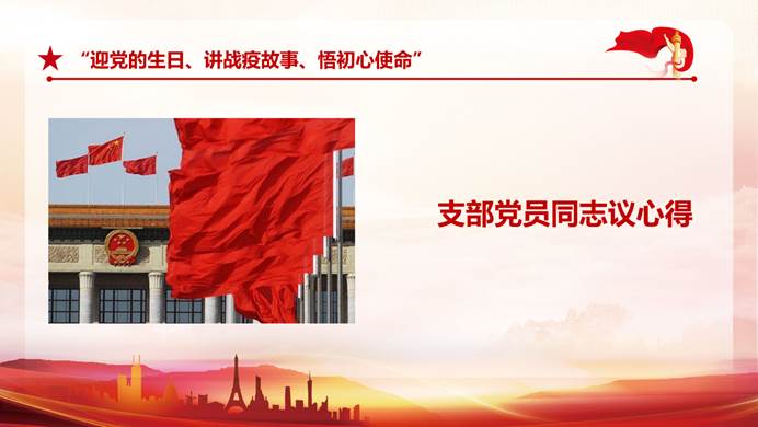 通过此次“迎党的生日、讲战疫故事、悟初心使命”线上主题党日活动,支部成员们深刻认识到了青年一代身上背负着的民族使命与民族希望。“心有所信才能远行,心有所想才能有所成就”。面对新的常态,面对如今的不确定性,没有人可以脱离,所以无论我们身处什么位置,我们都应该始终保持初心,这样才能始终向着党旗飘扬的方向,大步前行!