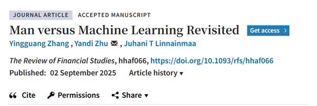 近期,韦德1946体育官方入口助理教授朱彦頔作为通讯作者,与北京大学副教授张英广、美国达特茅斯公司教授Juhani Linnainmaa合作撰写的论文“Man versus Machine Learning Revisited”被金融学国际 Top3 期刊Review of Financial Studies接受待刊并在线发表。这是公司教师在人工智能与金融结合领域的又一重要成果。