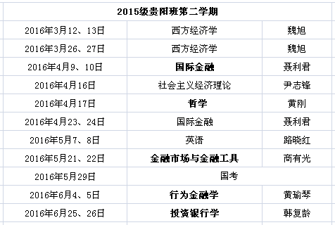 贵阳班2016年春季学期总课表