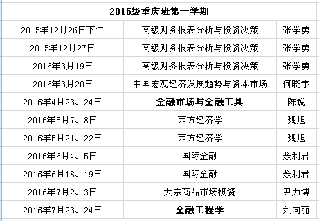 重庆班2016年春季学期总课表