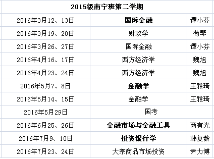 南宁班2016年春季学期总课表