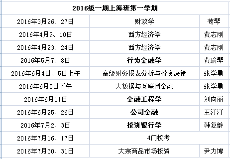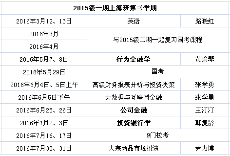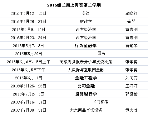 上海班2016年春季学期总课表