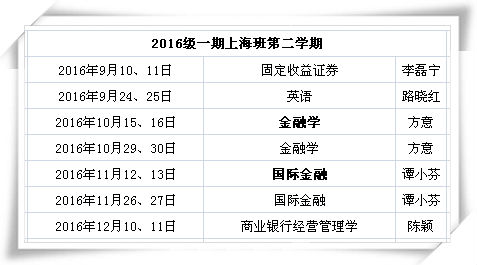 上海班2016学年秋季学期总课表