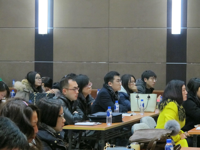 首先岳总对首创集团以及首创金服的成立、发展和产品进行了简要介绍,之后便开始了今天的主题讲座“对互联网金融行业的探索和实践”。总共分为两大板块,一是互联网金融行业分析与探索,二是首创金服的互联网金融实践。首先岳总详细讲解了互联网金融的发展,并通过腾讯财付通、京东金融、阿里金融等经典案例分析了互联网金融行业的典型模式;结合美团网和大众点评的合并案例说明了互联网金融行业的并购重组;同时针对前段时间“e租宝”事件提醒了这个新兴行业中的风险。之后岳总就首创金服的管理机制、部门设置、运营模式从操作上进行了详细解读。现场同学均十分认真地聆听,生怕错过了每一个细节。