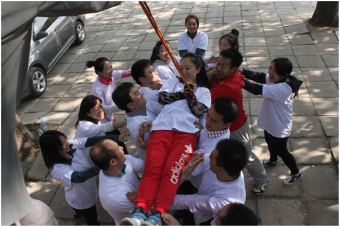 各队完成完各自的”首秀“之后,分别开始了趣味盎然的拓展项目。同学们纷纷拿出了勇气,展现了才气,凝聚了默契,出色地完成了各项活动。活动过程中,笑声不断,其乐融融。