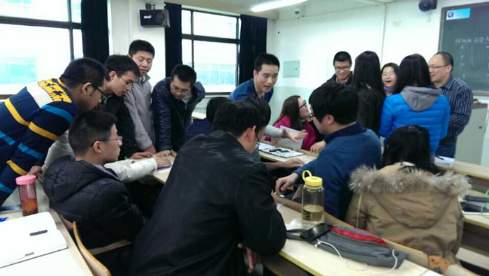 课程开始后,郭剑光老师首先对Futures、Option交易的相关内容做了理论性讲解,运用概率论等相关专业知识,如何在期货、期权交易市场中进行合理定价,规避投资风险,如何调整最佳的投资策略并保证获得固定收益等相关实战知识,做了理论化、系统性的分析讲解。随即,参加课程学习的所有同学在郭剑光老师的指导之下,分为三个交易组,每组运用一副扑克牌,进行模拟交易演习。