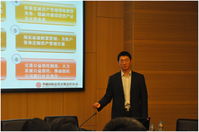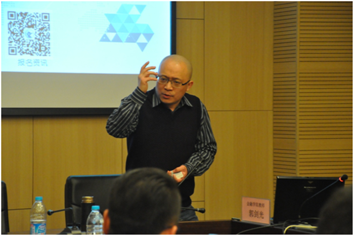 之后业界导师张鹏和公司教师郭剑光分别为大家带来了两次精彩的授课,主题分别是“中国信托行业:创新的源泉VS风险的温床”和“衍生品与投资风险管理”。张鹏老师详细介绍了信托行业的创新与风险,并结合本公司的实际数据展开分析。紧接着,郭剑光老师运用概率论等相关专业知识,对如何在期货、期权交易中进行合理定价,规避投资风险进行理论性讲解,之后运用一副扑克牌进行模拟交易演习。大家纷纷参与进来,活动的热烈气氛达到高潮。这两堂课旨在给大家展示金融专业在职研修班的授课质量,分别让大家初步了解校内老师和业界老师的授课方式与授课水平。