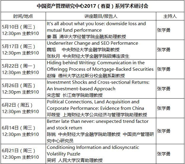中国资产管理研究中心2017(春夏)系列学术研讨会