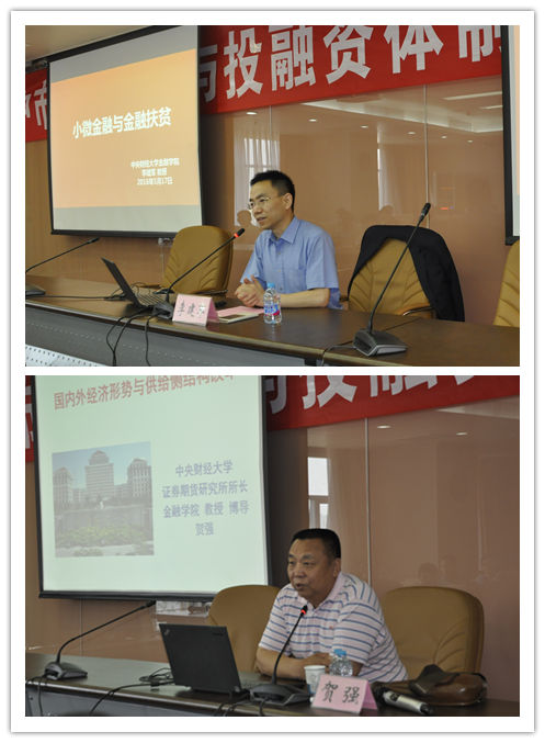 5月17日由公司李建军教授和贺强教授主讲。李建军教授结合巴中市的金融环境和经济发展状况重点讲授了小微金融企业的发展模式和路径以及金融精准扶贫的具体途径;贺强教授作为全国政协委员从宏观角度谈论了国际和国内的经济形势并重点谈了我国宏观调控由需求侧向供给侧结构性改革的情况,并提到全国政协对类似巴中市这样经济相对不发达地区的重视。