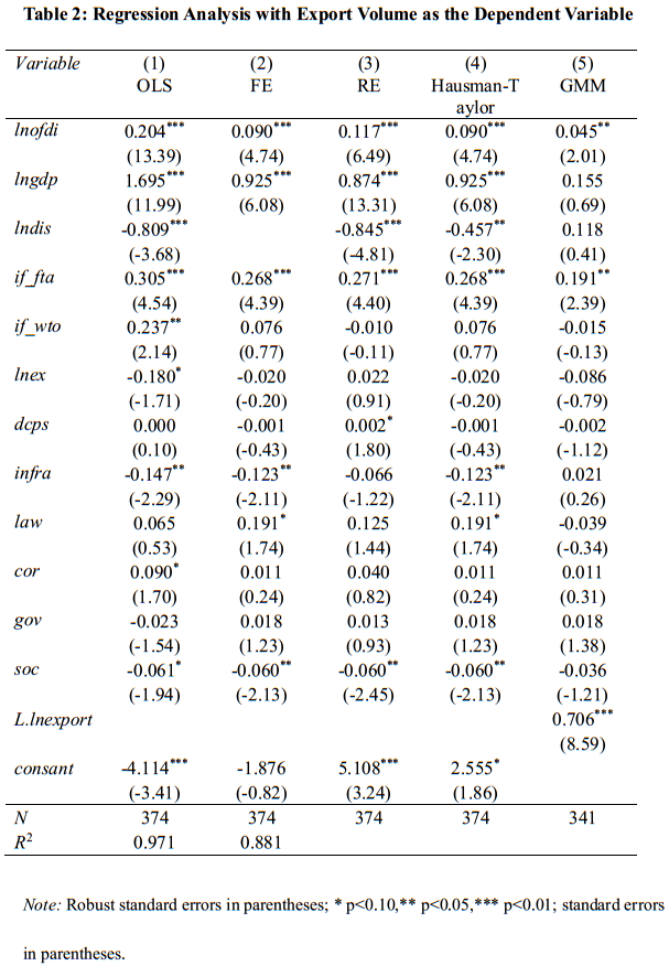 (一)对外直接投资对出口总量的影响