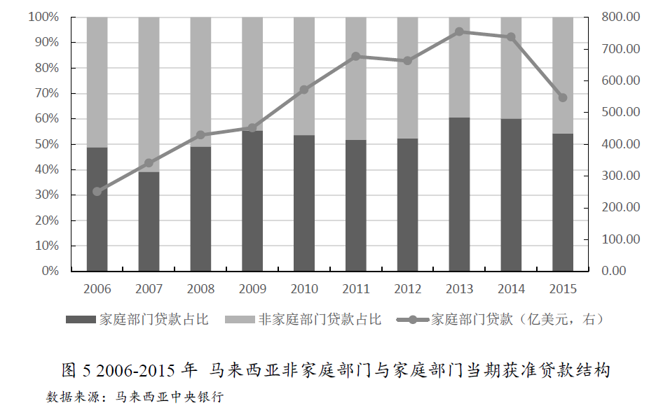 图5 2006-2015年 马来西亚非家庭部门与家庭部门当期获准贷款结构
