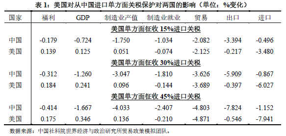 数据来源:中国社科院世界经济与政治研究所贸易政策模拟团队。