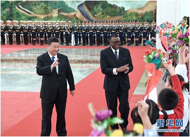 图1:习近平在人民大会堂北大厅为根哥布举行欢迎仪式