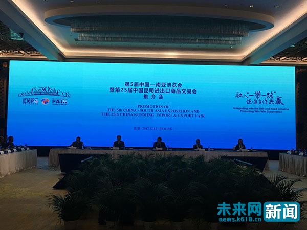 2. 2017年12月12日,由中华人民共和国商务部、云南省人民政府共同举办举行的第5届中国-南亚博览会暨第25届中国昆明进出口商品交易会推介会在云南昆明举办,超80国家地区参与盛会。中国-南亚博览会旨在以促进中国与南亚、东南亚全面合作与发展为宗旨,以推动“一带一路”建设为主线,以新城惠融、合作共赢为主题,着力打造集货物、贸易、投资洽谈和文化交流为一体的综合性博览会。