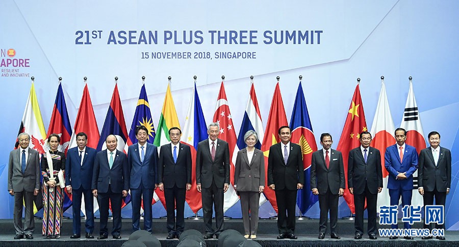 3.2018年11月15日上午,国务院总理李克强在新加坡会展中心出席第21次东盟与中日韩(10+3)领导人会议。东盟十国领导人以及韩国总统文在寅、日本首相安倍晋三共同出席。新加坡总理李显龙主持会议。