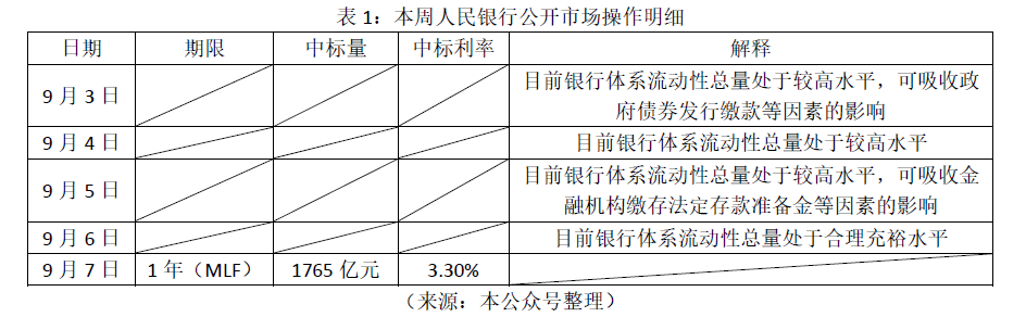 2. 2018年9月3日到9月7日,人民银行进行了多笔公开市场业务操作,具体表1所示。