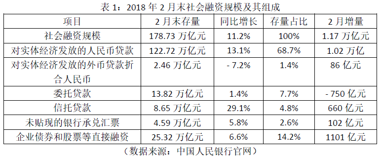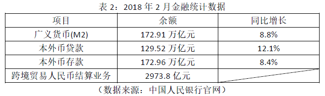 表2:2018年2月金融统计数据