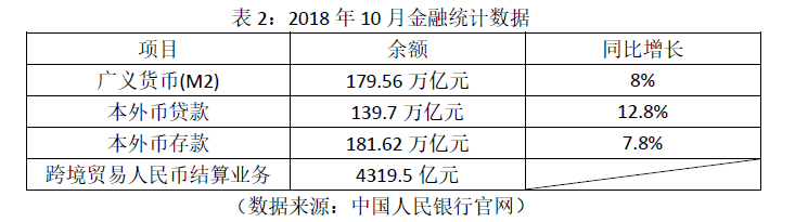 2.2018年11月13日,中国人民银行发布了2018年10月的金融统计数据,具体如表2所示。