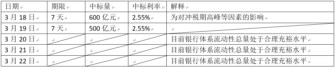 3.2019年3月18日到3月22日,人民银行进行了多笔公开市场业务操作,具体表1所示。