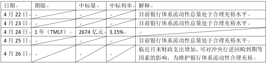 4.2019年4月22日到4月26日,人民银行进行了多笔公开市场业务操作,具体表1所示。