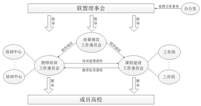 联盟为了保障有效运转,设立了以下工作机构(如图1所示)。各个机构任务明确又相互协作,致力于为成员高校提供优质的服务。