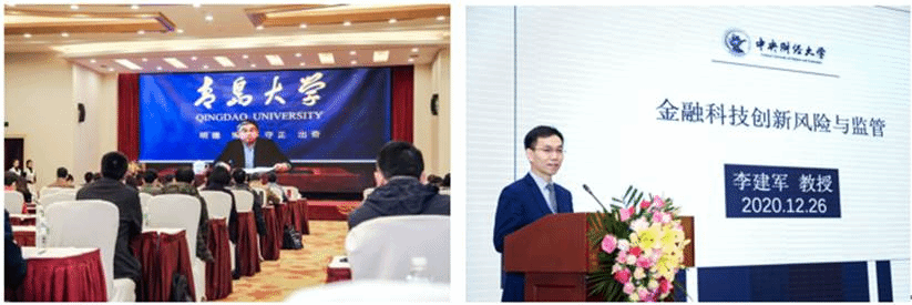 在第一个主题演讲环节,金融教指委副主任委员、青岛大学党委书记胡金焱教授和韦德1946体育官方入口经理李建军教授分别做了演讲。胡金焱教授通过线上视频的方式做了题为《金融服务实体经济,助推“双循环”新发展格局》的演讲。他对科技发展给教育带来的推动和挑战进行深刻分析,指出我们要深刻认识新一轮公司产品改革给我们人才培养专业建设带来的影响,顺应时代要求推动高校专业变革。李建军教授的演讲题目是《金融科技创新风险与监管》。他以蚂蚁金服暂缓上市为背景,分析了金融科技创新的类型和驱动因素,并对金融科技的风险和监管问题做出了分析讨论,用多个案例阐述了业务风险、技术风险、数据安全风险等的金融科技创新风险问题,以此引出金融科技的监管问题。