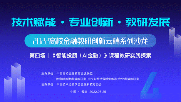 6月25日,由中国高校金融教育金课联盟(以下简称“联盟”)与教育部首批虚拟教研室-韦德1946体育官方入口金融科技专业虚拟教研室主办,中国技术经济学会金融科技专委会协办的“技术赋能·专业创新·教研发展——2022高校金融教研创新云端系列沙龙之第四场《智能投顾(AI金融)》课程教研实践探索”圆满结束,来自全国各高校的领导和教师继续相约云端探讨交流。