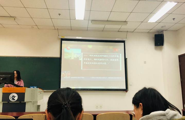 在第一个环节,同学们观看了“五四精神”、延安精神、长征精神和“两弹一星”精神的介绍视频。视频资料中有对于不同历史事件的完整梳理,也有对于李大钊等人物经历的细致介绍,同时有当今不同地区开展学习活动的介绍,更有专家的解读和群众的反馈。尤其是延安精神的视频记录了延安红色干部培训基地各项活动的开展,学习中心的环境和受访学习人员的感想都让我们感受到一种浓厚的红色氛围。