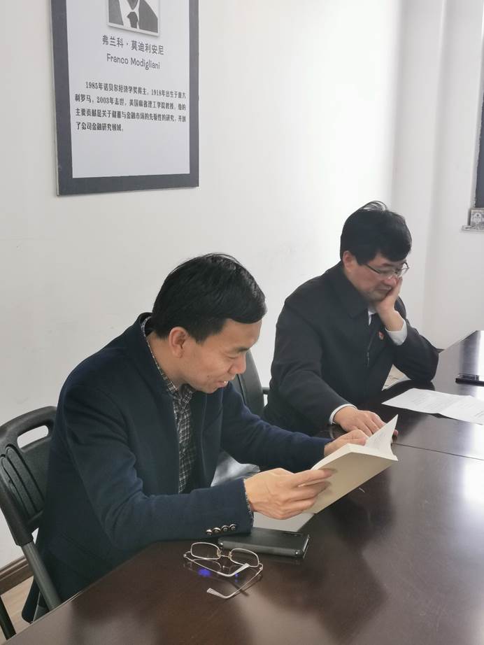 紧接着,支部集中学习了《习近平关于“不忘初心、牢记使命”论述摘编》,金融科技系教工党支部书记李德峰就学习内容做主旨发言。李德峰同志从70年建国后党和国家的发展谈起,提出应坚持“不忘初心、牢记使命”,坚持始终贯彻党的根本价值理念,在个人的本职工作中承担责任和使命,同时要定期进行自我革命、自查整改,推动公司和国家发展。