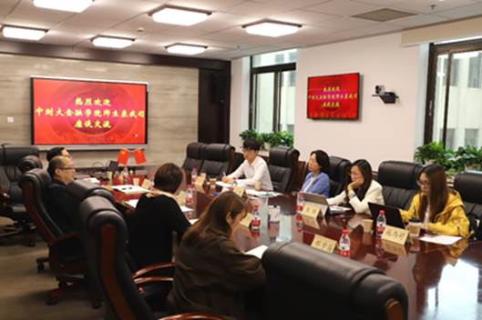 为深入开展“不忘初心、牢记使命”主题教育,金融公司党委紧紧围绕为党育人、为国育才,突出党的政治建设,紧扣立德树人的根本任务,聚焦贯彻落实习近平新时代中国特色社会主义思想和习近平总书记关于教育工作的重要讲话和指示精神,认真检视问题, 2019年10月11日下午,针对员工实习和就业方面存在的困难,金融公司党委书记毛静、副经理王辉、员工代表一行四人赴五矿集团财务有限责任公司开展党建交流,交流会采取座谈会的形式,五矿集团财务有限责任公司总经理王秋劲、班子副职冯金胜、综合管理部经理曹月秋、袁晖出席会议,座谈会由冯金胜同志主持。