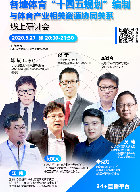 2020年5月27日,中心主任张宁教授参加了由北京大学国家体育产业研究基地主办的体育“十四五”规划编制线上研讨会,就“十四五”规划编制的经验、体育产业发展、大健康与金融融合、生命质量等话题进行了分享。