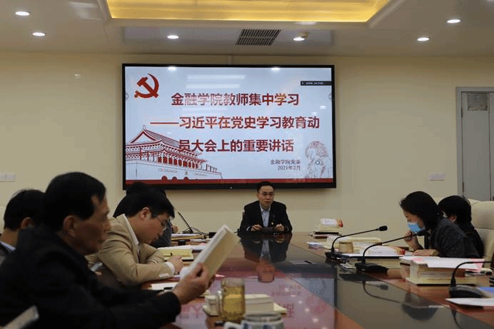 3月24日下午,金融公司党委在沙河校区3号楼127会议室组织全体教师开展党史学习教育,深入学习贯彻习近平总书记在党史学习教育动员大会上的重要讲话精神,认真学习公司党委书记、公司党史学习教育领导小组组长何秀超在党史学习教育动员大会上的动员讲话内容,激励教师以饱满的政治热情学好学透党史,汲取党的建设史的政治智慧。公司党政领导班子和全体教师参加会议。活动由公司党委书记毛静主持。