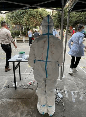 第二天,天还没亮,老爸就送我到达此次的志愿服务地点小西门社区。当工作人员进行工作分配时,介绍道:“信息录入需要4名志愿者和4名工作人员,2人一组搭配着,要用到电脑……”我想正好能发挥所长,于是踊跃提出参与此项工作。此外,还有维持秩序等岗位的志愿者。随后,我们又被告知,信息录入岗位的志愿者和工作人员们都需要穿防护服。能成为“大白”让我既兴奋又紧张,同时也给我带来了一些不便,如不能上厕所和喝水,但是这些不便都被我一一克服,忍一忍也就过去了。穿、脱防护服都有规定的顺序,同时在整个过程中注意消杀,多次使用酒精消毒。