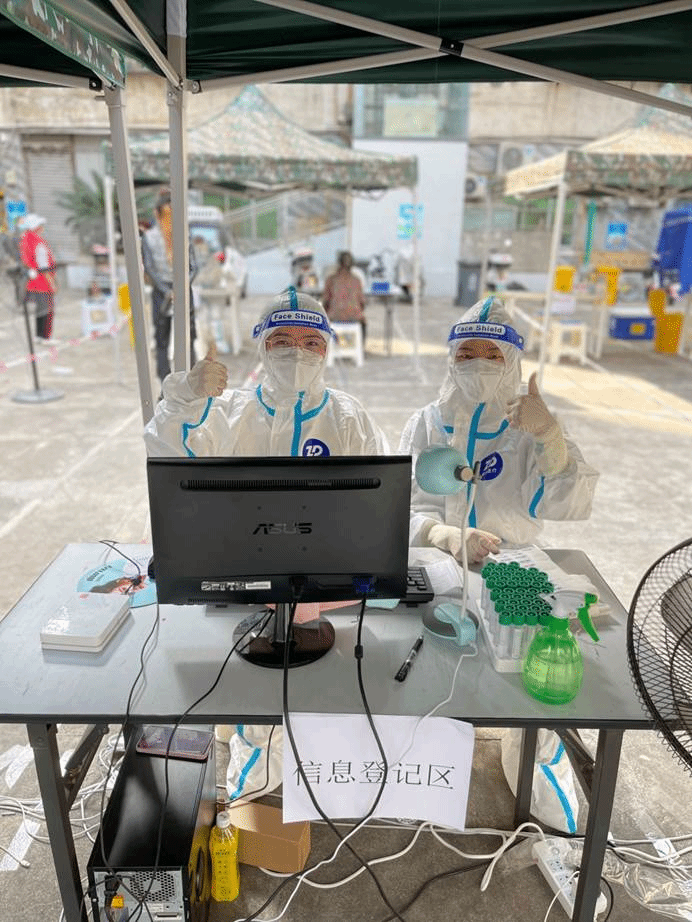 下午总体人少,我们只安排了两组上岗,上午有四组上岗。我的工作人员小姐姐提议我俩交换一下岗位,让我也体验一下扫码(渝康码)、录入信息、提交信息的工作。于是,我俩交换位置,我坐在了电脑前面,由我来负责本组的主要任务。刚开始,扫码要扫几次才能识别,后来,我找到合适的角度便能一扫即准。就这样,经过一下午的努力,我们又为300余人的核酸检测录入信息。